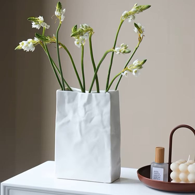 Paper Bag Style Ceramic Vase